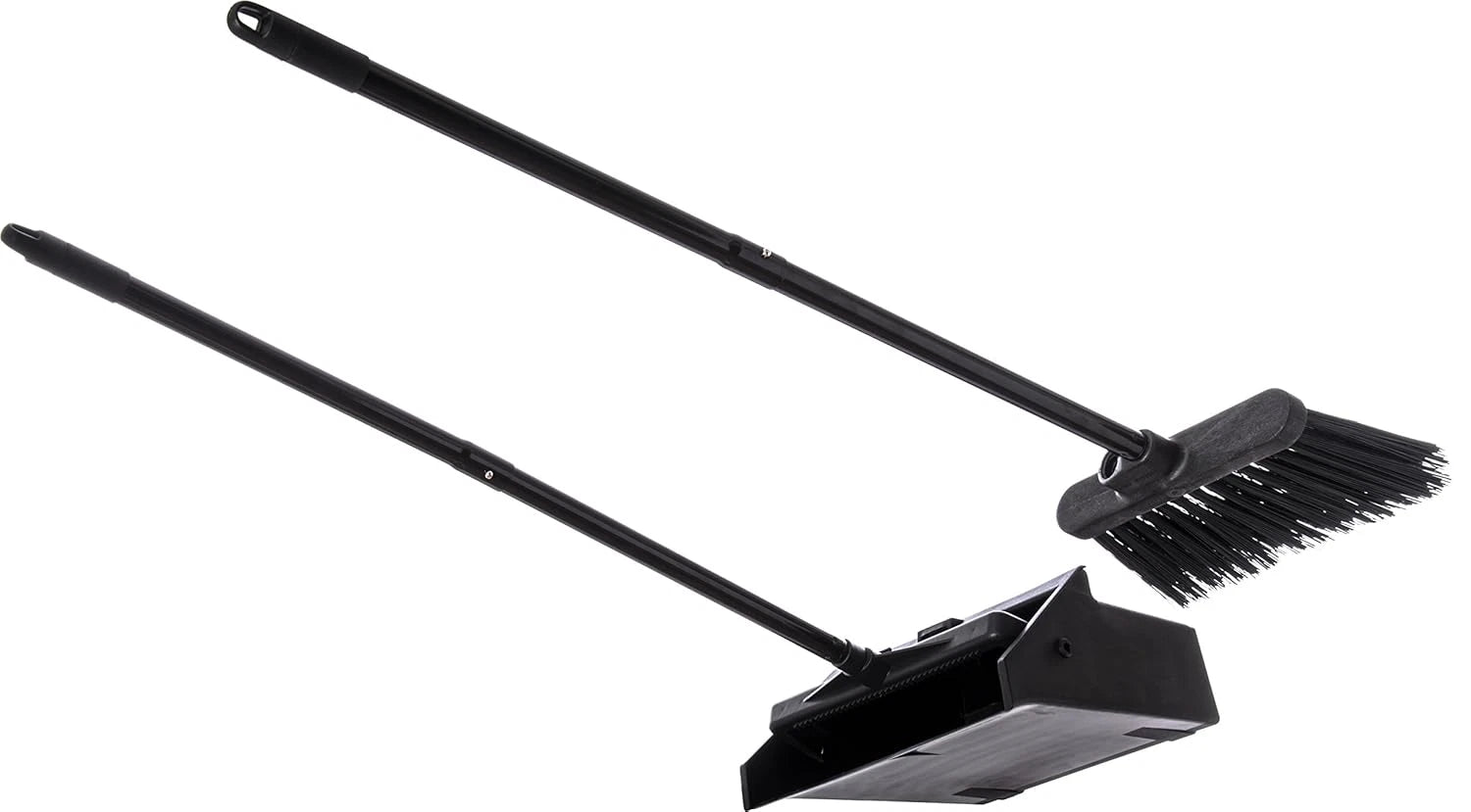 Duo-Pan Upright Dust Pan and Broom Broom Set with Clip for Floor Cleaning, Restaurants, Office, and Janitorial Use, Plastic, 36 Inches, Black